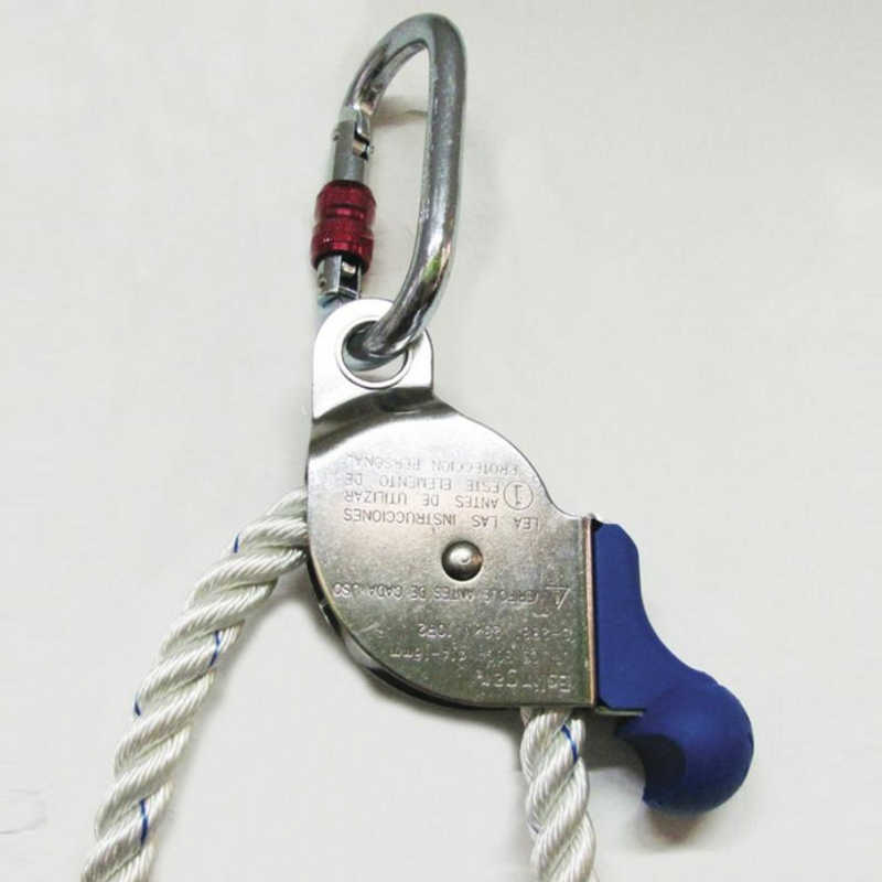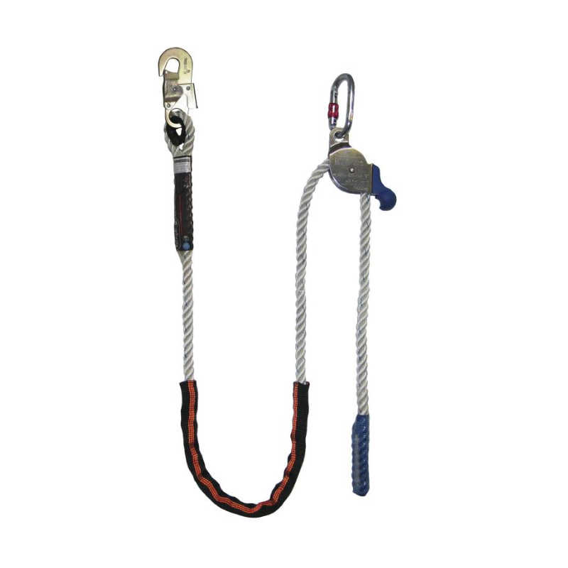 CARACTERÍSTICAS: SOGA DE 14MM – LARGO 3MTS CON DISPOSITIVO REGULADOR EN AC. INOX., CARABINERO, VAINA PROTECTORA Y MOSQUETÓN 18 MM EN EXTREMO
